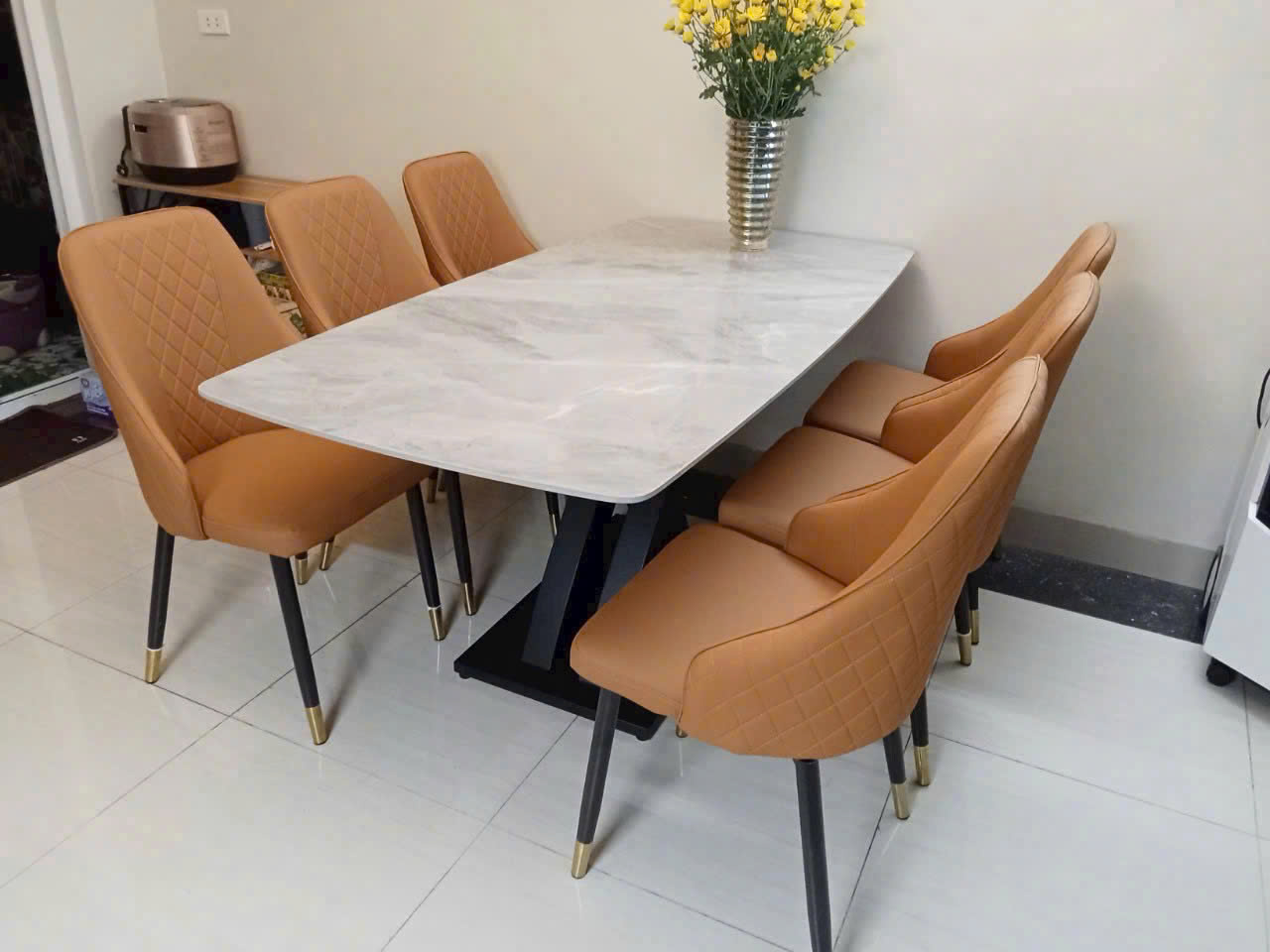 Bàn mặt đá kèm ghế bọc da chân sắt sơn tĩnh điện là một trong những lựa chọn hàng đầu cho khách hàng ưa chuộng phong cách châu âu vừa sang trọng, hiện đại mà còn rất tinh tế.
