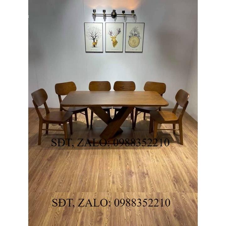 Bàn ghế ăn gỗ sồi cao cấp (bàn 160cm mặt bàn màu trắng+6 ghế tựa lưng cao)
