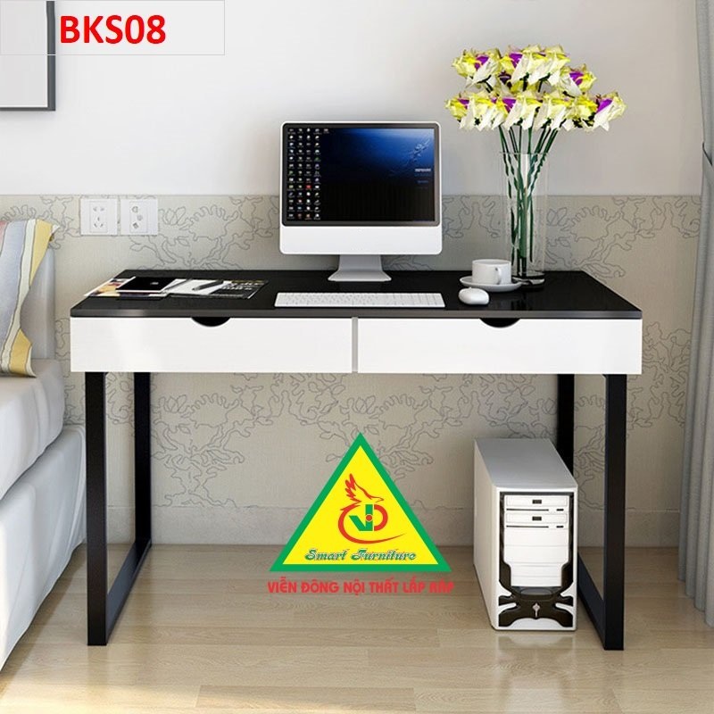 Bạn có thể dễ dàng nhận thấy sự chắc chắn của mẫu bàn làm việc khung sắt mặt gỗ nhờ thiết kế khung sắt mang lại.