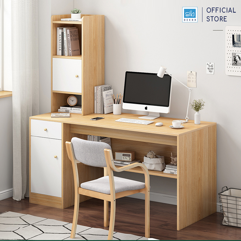 - Bàn làm việc được thiết kế kèm tủ sách 2 trong 1.