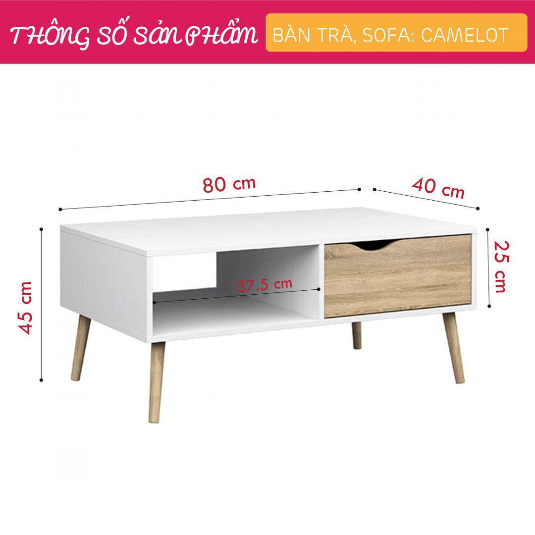 Bàn trà gỗ SMLIFE Camelot có kiểu dáng hiện đại, thiết kế đơn giản mang lại sự nhã nhặn, sang trọng cho không gian phòng khách của gia đình bạn. Bàn trà, bàn sofa SMLIFE cung cấp thêm phần ngăn chứa đồ giúp người dùng dễ dàng sắp xếp đồ đạc, đảm bảo sự gọn gàng, ngăn nắp. Sản phẩm hiện đang được bán với mức giá vô cùng phải chăng, có tính cạnh tranh cao.