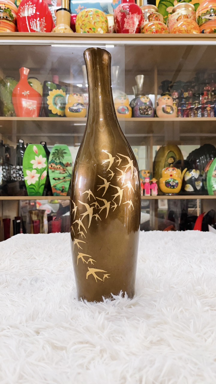 Bình Gốm phủ Sơn Mài Cao Cấp họa tiết đàn chim én size 40x12 cm
