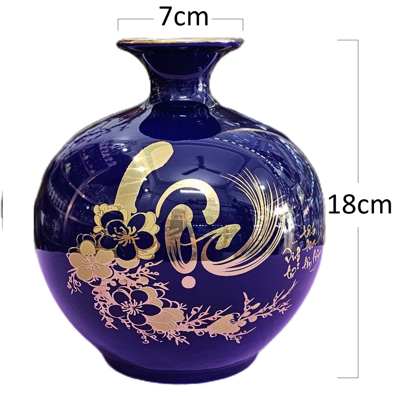 Bình hút tài lộc chữ thư pháp "PHÚC" và "LỘC" vẽ vàng 18k (cao H18cm) gốm sứ Bát Tràng tặng kèm đế gỗ tiện liền khối