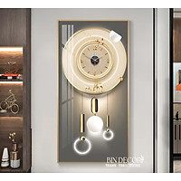 Tranh treo tường đồng hồ cách điệu họa tiết sang trọng khổ dọc kèm đinh treo