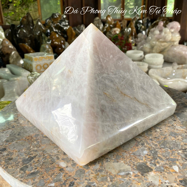 Trong phong thủy, đá tự nhiên nói chung và đá thạch anh nói riêng là vật phẩm mang năng lượng của đất trời, có khả năng điều hòa khí trường, mang lại sự cân bằng và hài hòa. Hình dạng kim tự tháp, với cấu trúc đặc biệt có khả năng thu hút và tập trung năng lượng vũ trụ, tạo ra một trường khí tốt lành.