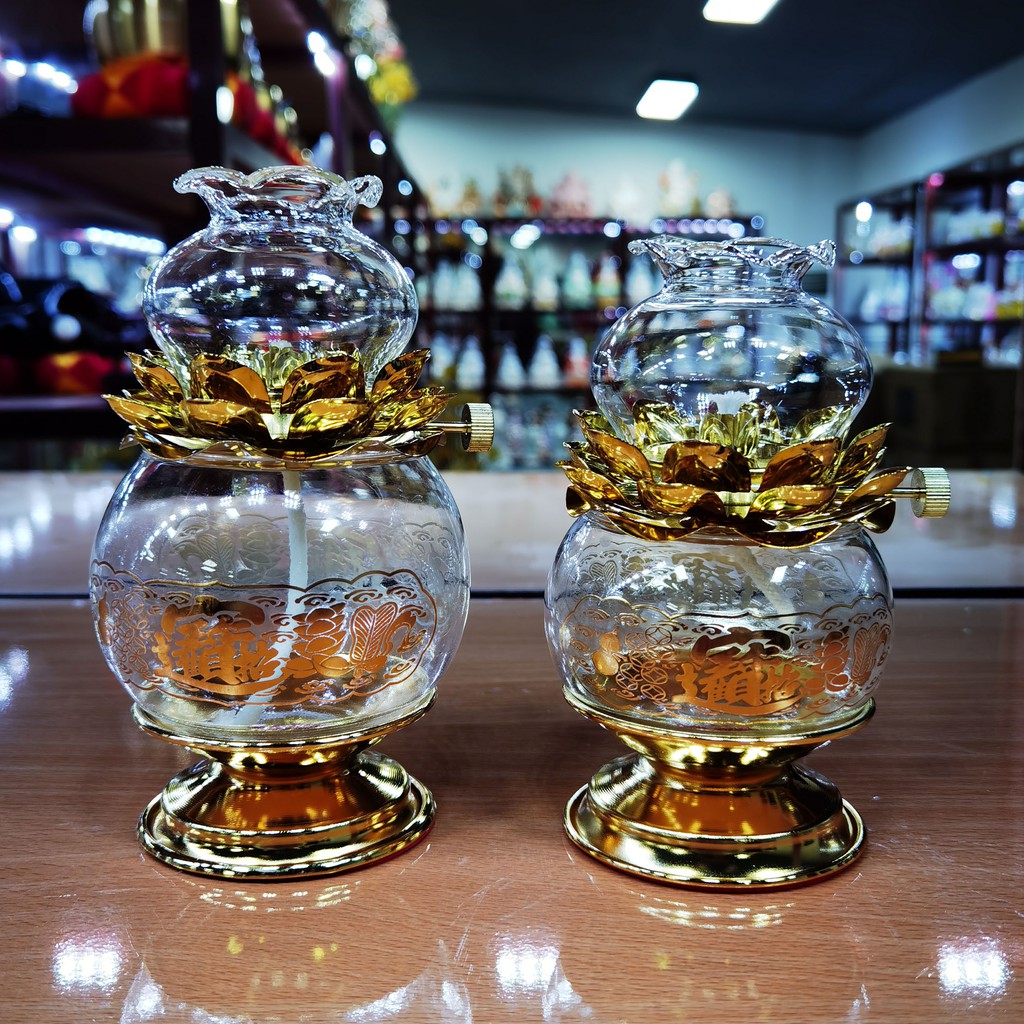 Giới thiệu Đèn Dầu Thuỷ Tinh Hoa Văn Hình Sen , Chữ Kinh , Chiêu Tài Tấn Bảo (Vật Phẩm Phong Thủy) - Phật Giáo Tường Thuận
