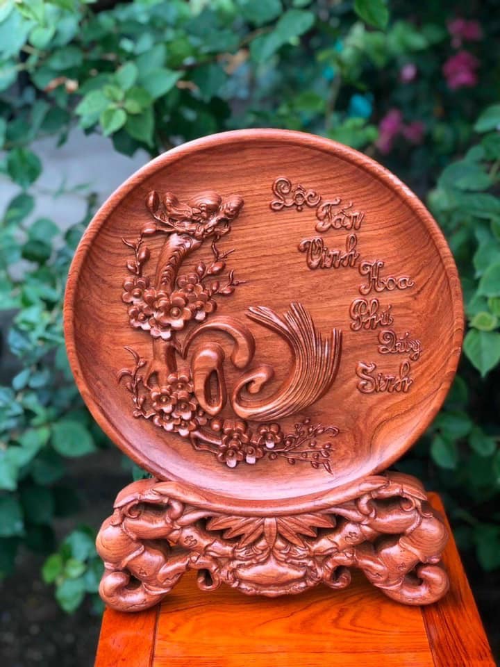 _Đĩa trang trí phong thủy trạm khắc chữ lộc ,được làm bằng chất liệu gỗ hương đá tự nhiên 100%