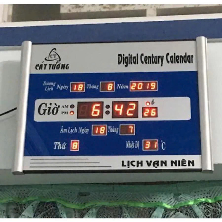 - Màn hình LED sắc nét – Hiển thị giờ, ngày, tháng, năm rõ ràng, dễ nhìn cả ban ngày lẫn ban đêm.