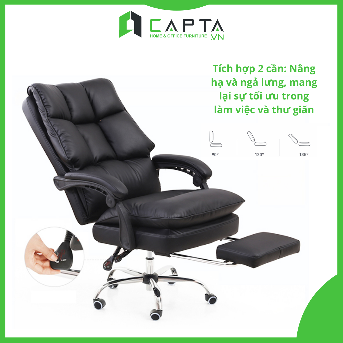 + Ghế có gác chân kéo tiện lợi, giúp việc thư giãn nghỉ ngơi thêm thoải mái.
