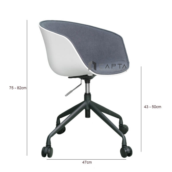 | Chất liệu | thân nhựa PP trắng, nệm vải bố mặt tiếp xúc, chân hợp kim nhôm sơn tĩnh điện trắng / đen |