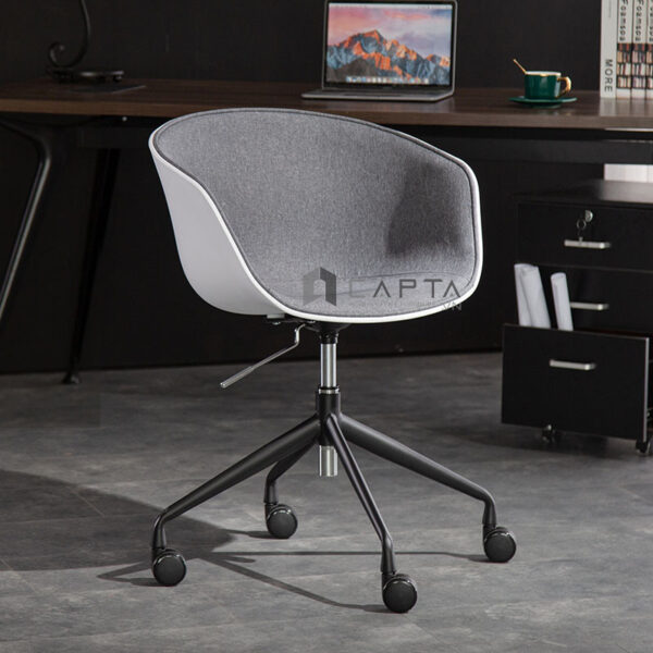 Thiết kế thân ghế chỗ ngồi rộng rãi thoải mái phù hợp nhiều cỡ người sử dụng. Đặc biệt là những công ty có nhân sự người ngoại quốc. Thân ghế nhựa PP bền màu, tay tựa liền khối chắc chắn. Lưng ghế hướng dần về phía sau tạo cảm giác dễ chịu khi tựa. Mặt tiếp xúc bọc nệm ngồi vải bố màu xám êm ái khi ngồi.