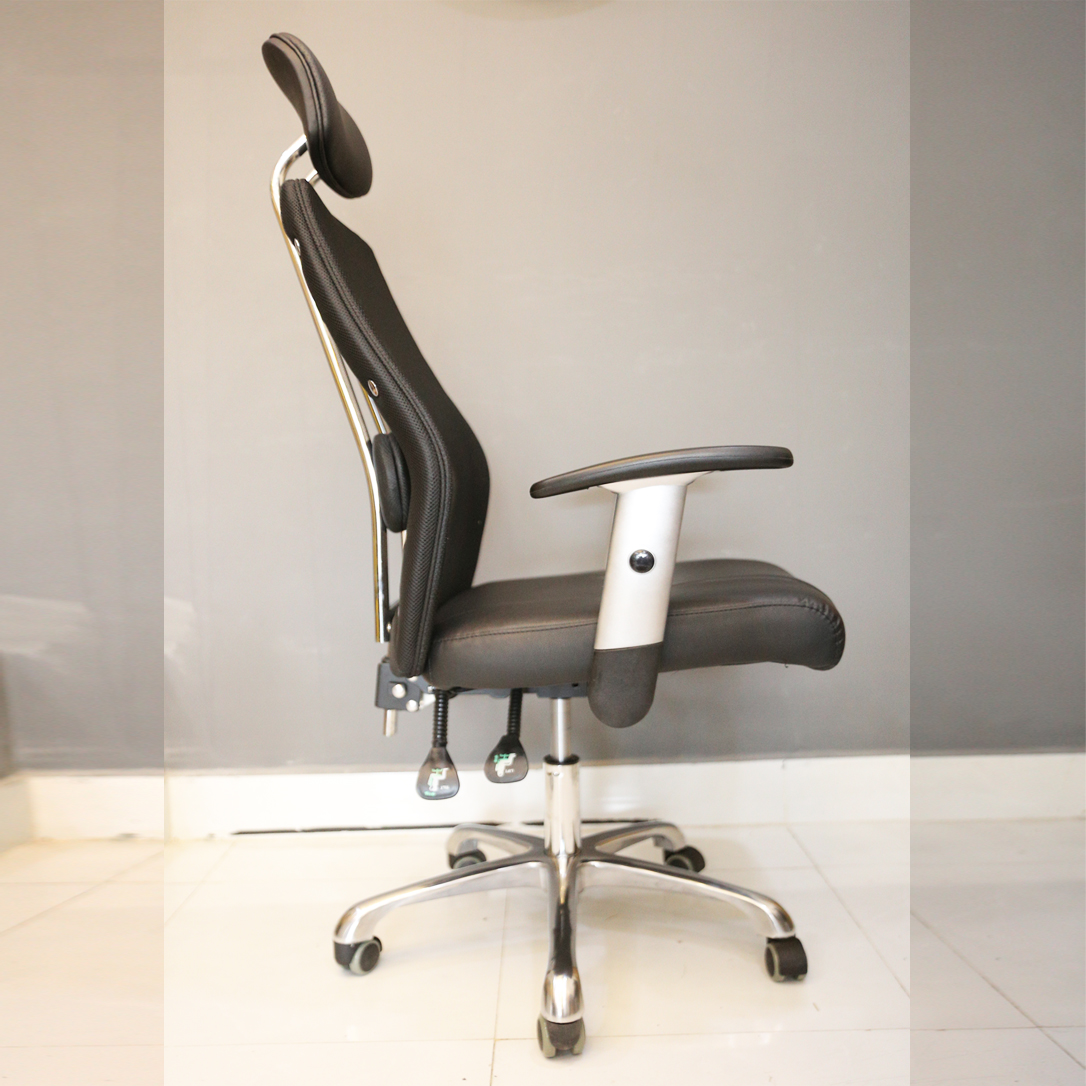- Bạn cũng có thể điều chỉnh độ cao của ghế tùy thuộc vào trọng lượng cơ thể, bằng cách nâng cần hơi được tích hợp phía dưới. Được thiết kế với mâm 2 cần ngã lưng tiện dụng, giúp người ngồi có thể ngả lưng ghế ra sau một cách thuận tiện, thư giãn thoải mãi trong lúc làm việc.