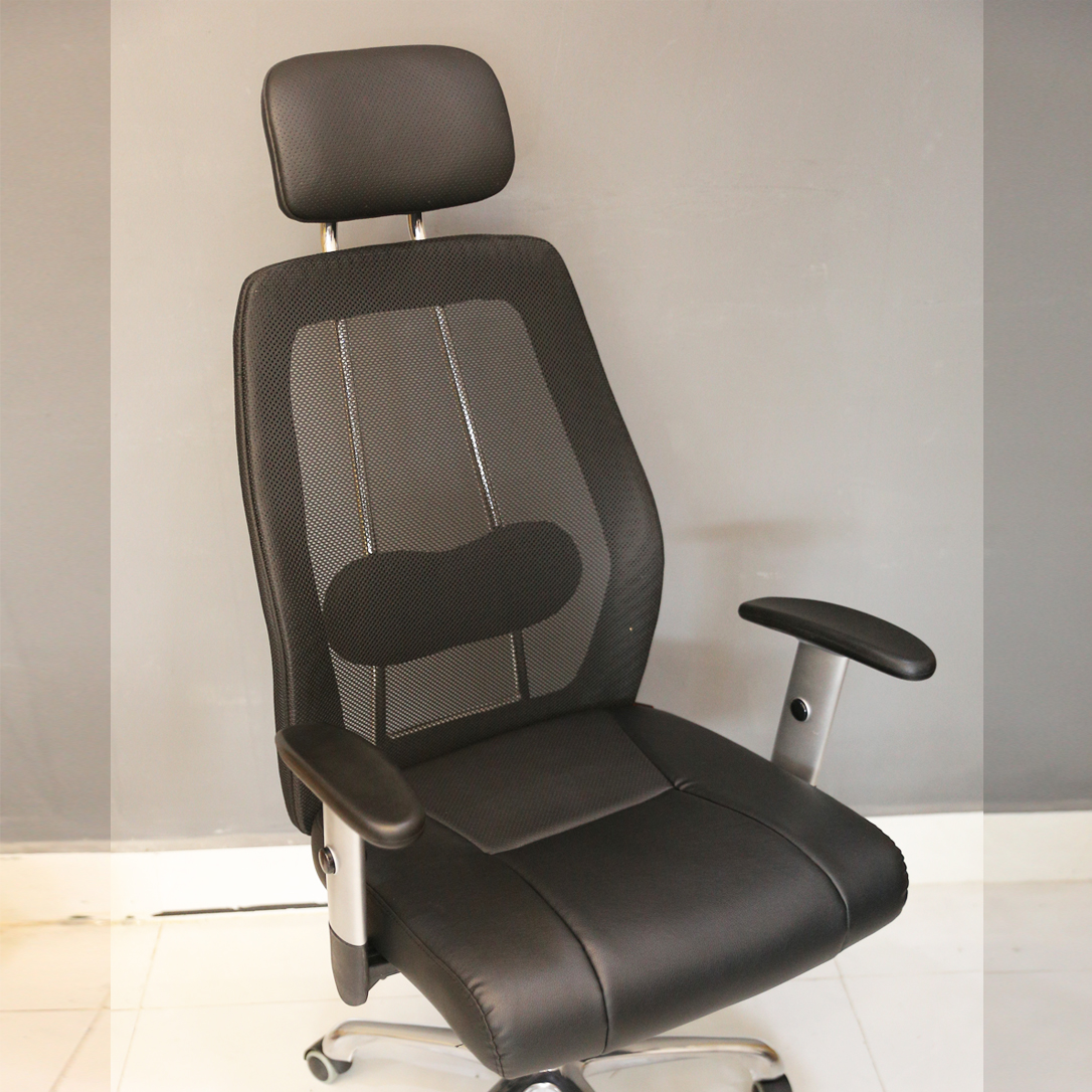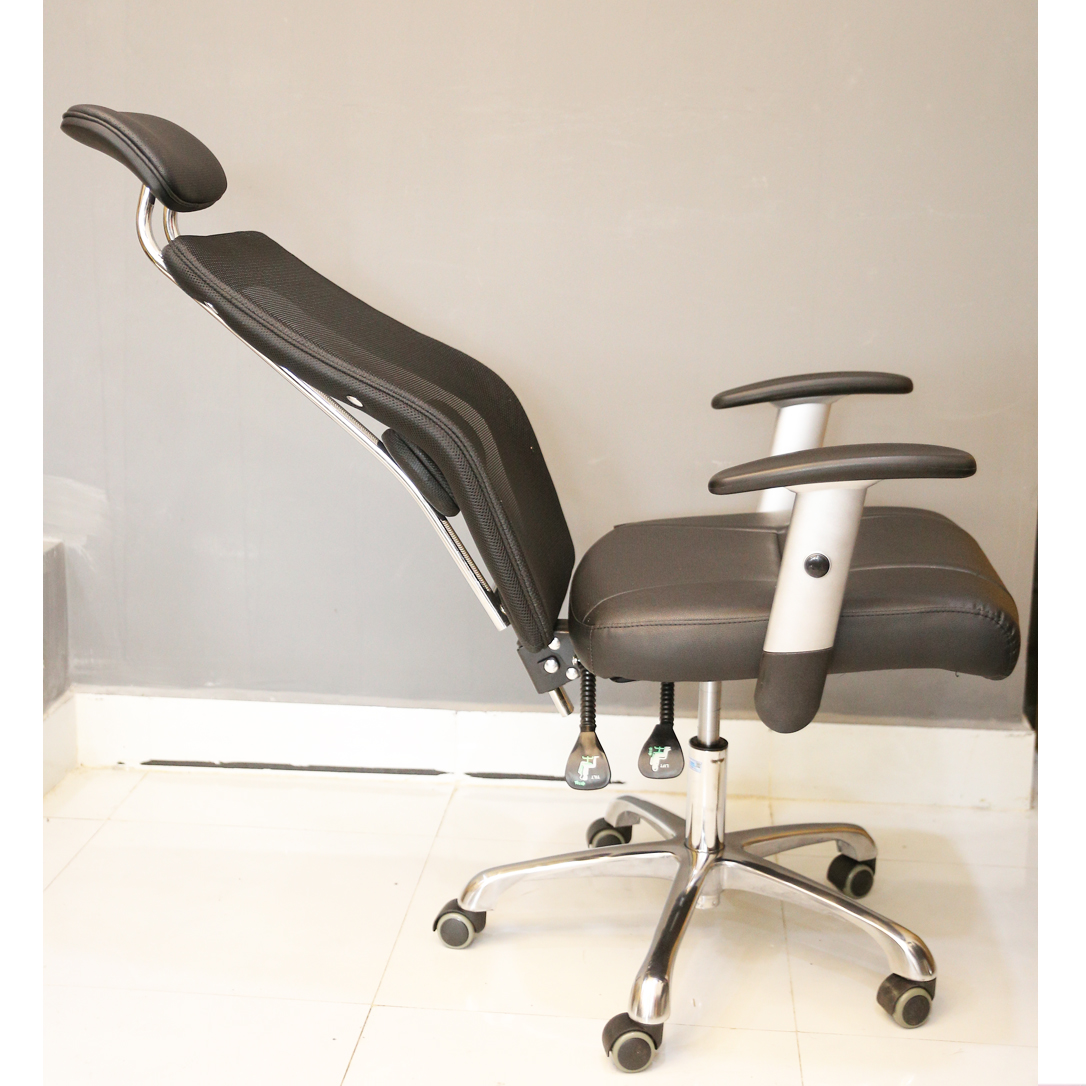 - Lưng ghế được bọc vải lưới với thiết kế nguyên khối, rộng rãi và độ cong vừa phải, giúp làm giảm sức ép lên cột sống, hạn chế tối đa tình trạng bị đau lưng khi tựa.