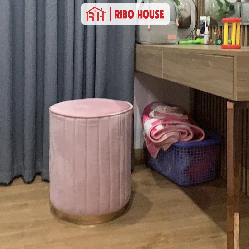 Giới thiệu Ghế trang điểm RIBO HOUSE đệm vải nhung nỉ chân kim loại, ghế đôn sofa trang trí phòng ngủ decor quán cà phê spa RIBO51
