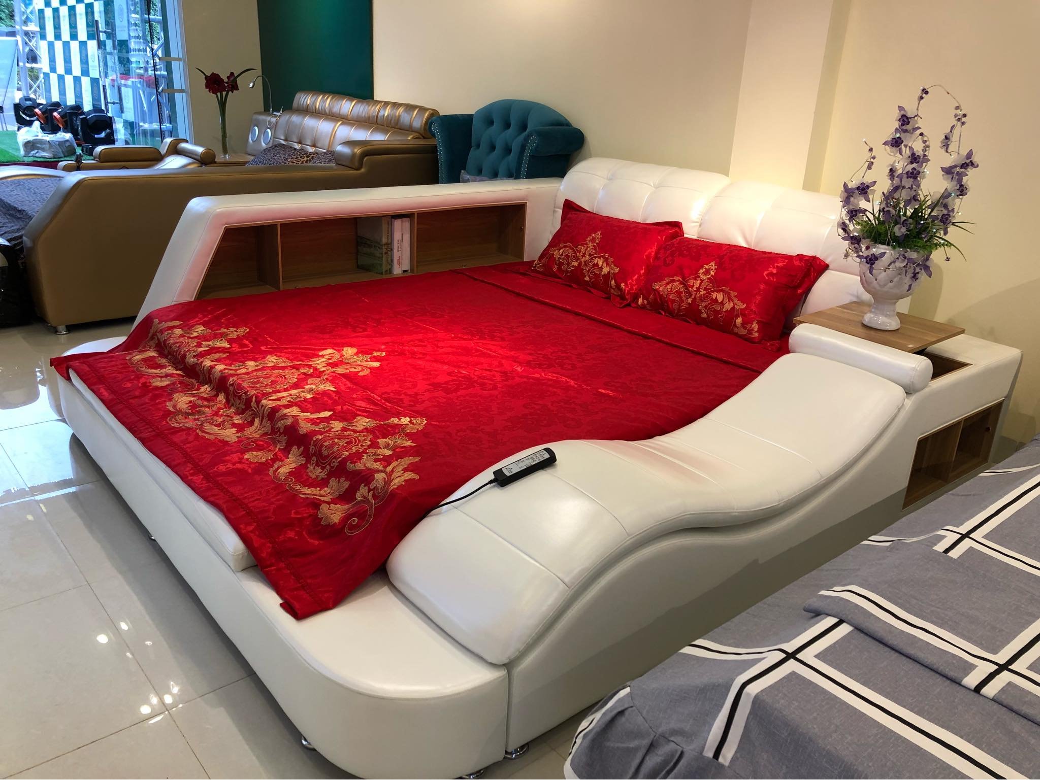 Giường ngủ cao cấp có thành Massage, thành hộc sách và hộc tiện ích, lọt lòng nệm 1m6 x 2m hoặc 1m8 x 2m. phủ bì 2m25 x 2m65