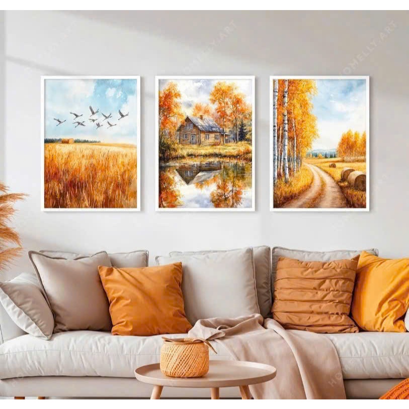 (HCM) Tranh treo tường cảnh mùa thu 2 trang trí phòng khách, trang trí quán kèm đinh treo