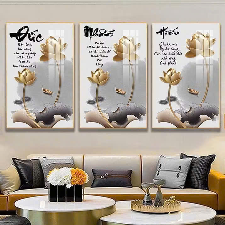 Tranh treo tường tráng gương hoa sen và chữa Đức - Nhẫn- Hiếu