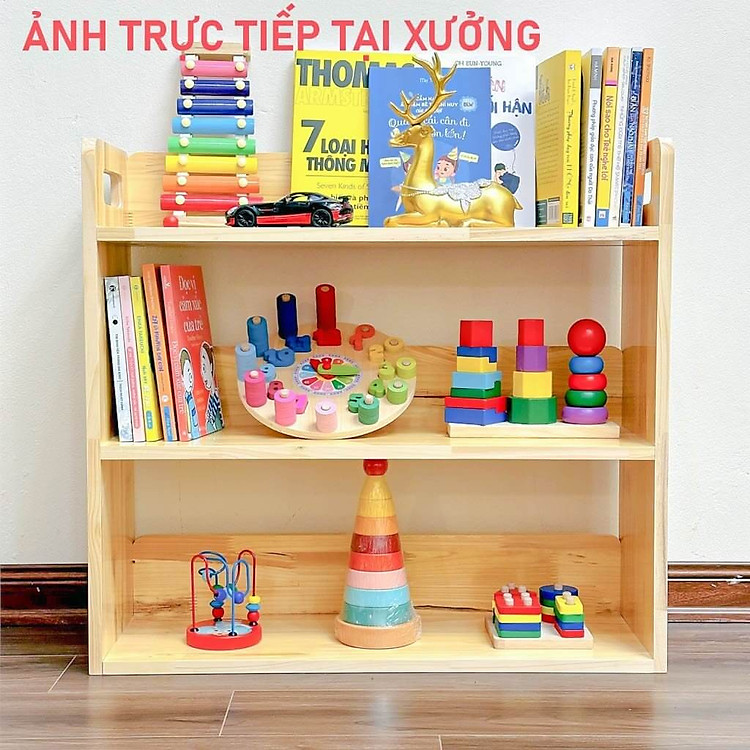 Giới thiệu Kệ Đồ Chơi, Kệ Sách Có Tay Cầm Bằng Gỗ Cho Bé Để Đồ Chơi, Decor Phòng Cho Bé