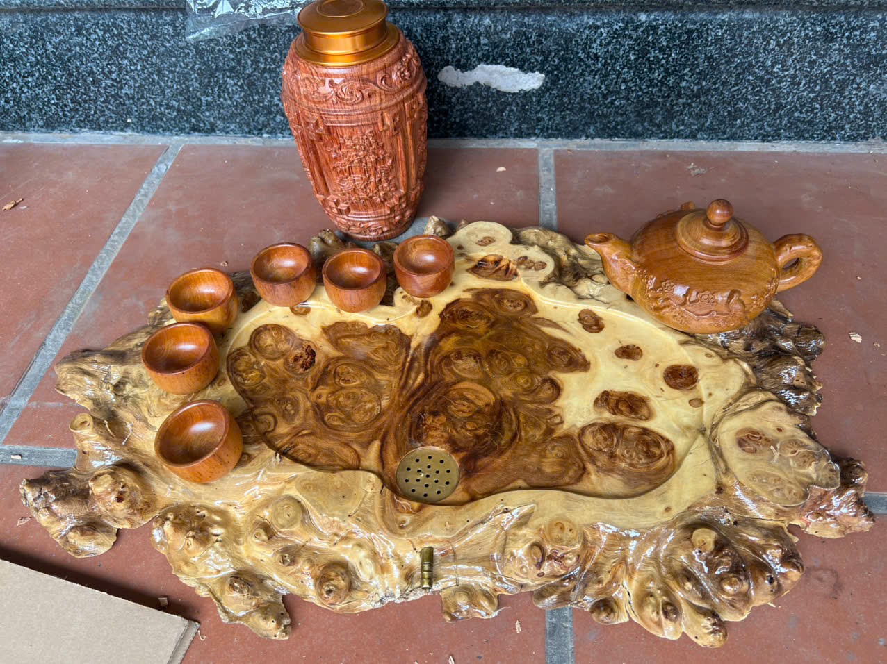 _ Khay trà  để bộ ấm chén được làm bằng chất liệu gỗ  nghiến liền khối tự nhiên 100%