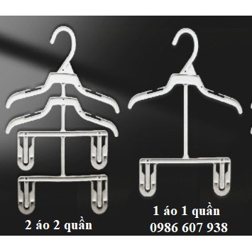+ Loại móc bộ 2 áo 2 quần và 1 áo 1 quần, chỉ có màu trắng, đầu móc không xoay được