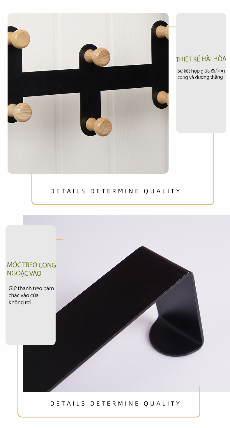 Móc treo đồ sau cửa, móc treo quần áo gắn tường MC10 với thiết kế trẻ trung, ứng dụng kết hợp giữa đường cong và đường thẳng tạo nên sự hài hòa cho sản phẩm. Sản phẩm bằng hợp kim sơn tĩnh điện kết hợp gỗ tre đặc giúp tăng khả năng chịu lực, bền bỉ và an toàn cho người dùng
