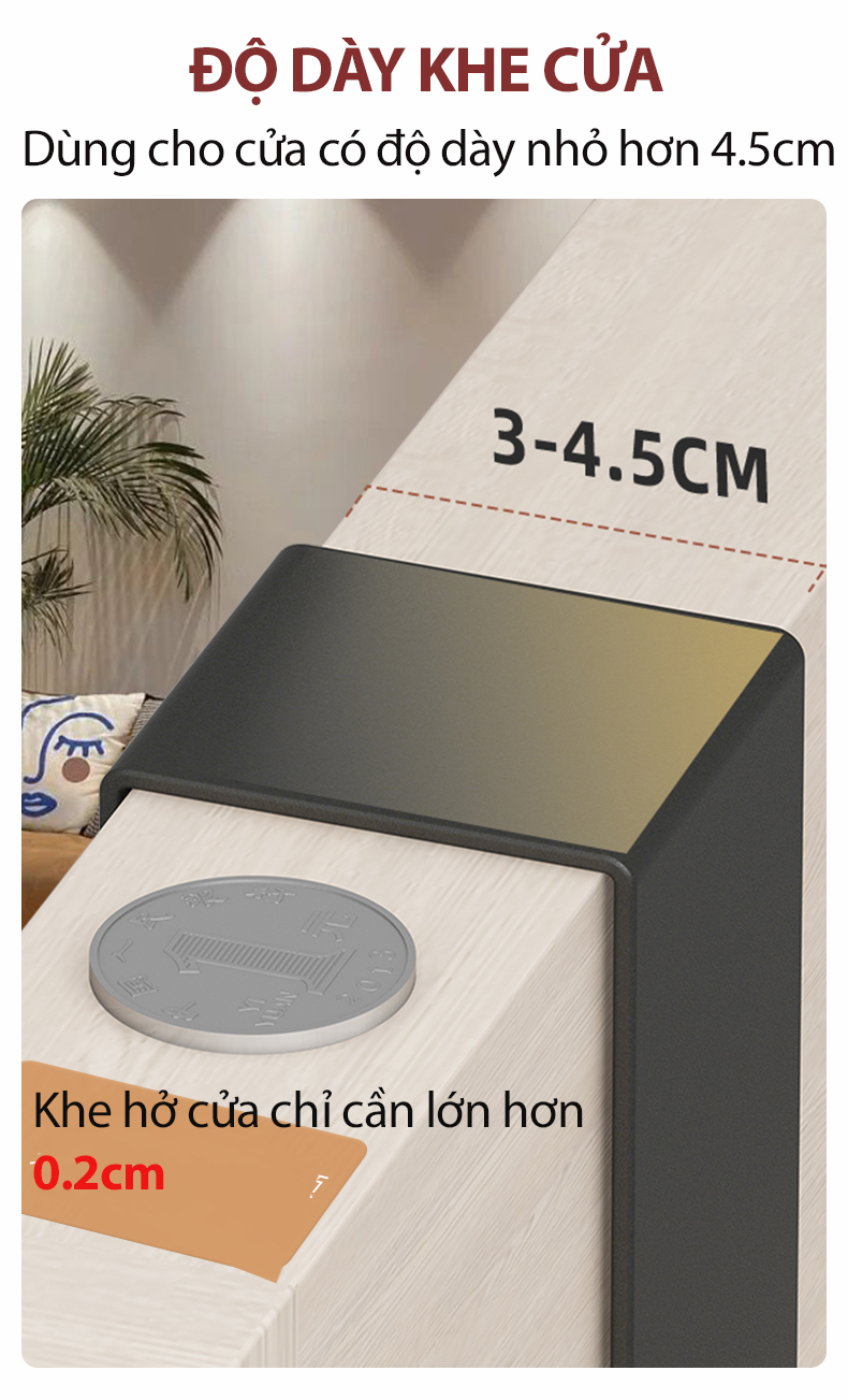 Độ đày thanh treo chỉ: 2mm. Do đó khe hở của cửa chỉ cần lớn hơn 2mm là có thể sử dụng được