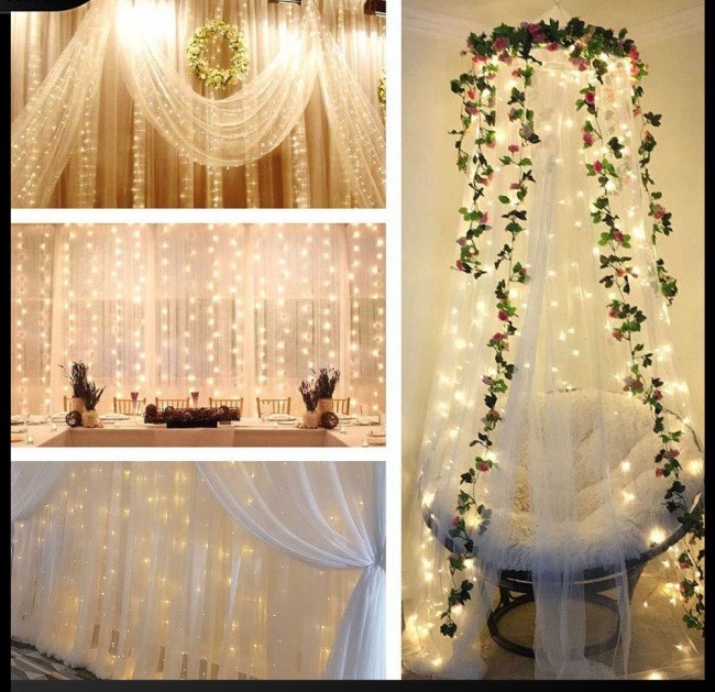 - Đèn rèm led là món đồ decor nhiều không gian như trang trí nhà cửa rèm cửa sổ phòng khách, rèm phòng ngủ, làm nổi bật phông rèm background trang trí sinh nhật, tiệc cưới, tiệc party cực đẹp