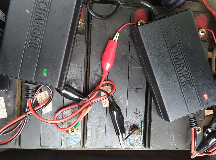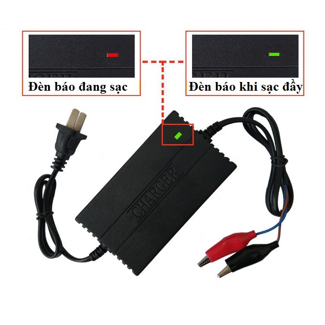 Chú ý khi cắm sạc vào ắc quy trước khi cắm điện , đèn đỏ báo sạc , đèn xanh báo đã sạc xong