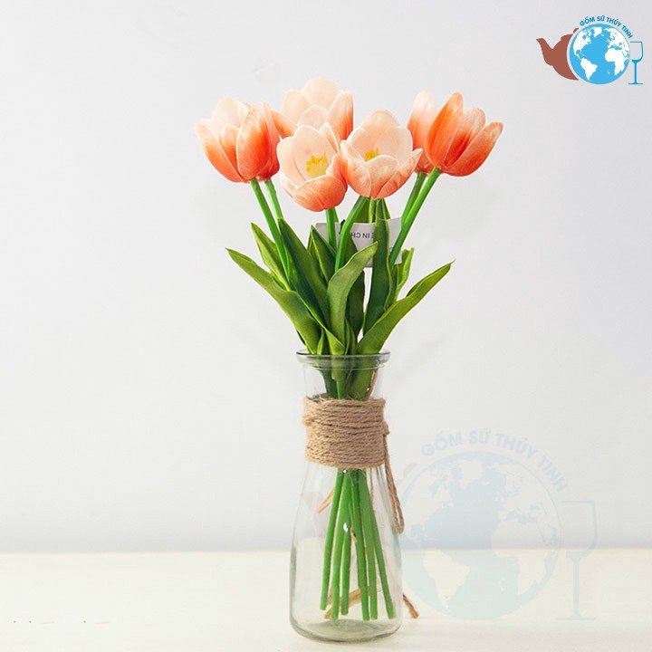 Giới thiệu Set 2 lọ hoa thủy tinh eo nhỏ và giọt sương tặng kèm dây dừa trang trí
