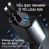 Tẩu Sạjc Nhanh Ô Tô 120W 4-in-1 – Sạc Siêu Nhanh, Có Đồng Hồ Báo Vôn Thông Minh, đèn trang trí