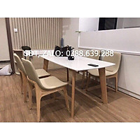 Bộ bàn ghế phòng ăn Juno sofa mặt trắng vân mây, chân chữ X kèm 4 ghế