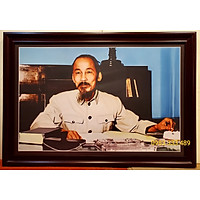 Ảnh gốc in dầu - Bác Hồ ngồi làm việc