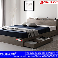 [Miễn phí vận chuyển & lắp đặt] Giường ngủ thông minh cao cấp bọc nệm đầu giường có hộc kéo gỗ công nghiệp Ohaha - GN019