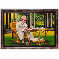 Tranh sơn mài Bác Hồ ngồi ghế mây