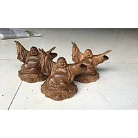 Tượng phật di lặc kim tiền bằng gỗ bách xanh thơm phức kt 15×9×8cm