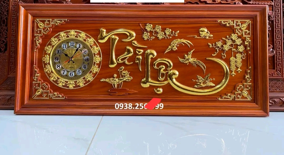 _ Tranh đồng hồ được điêu khắc chữ tài lộc ,vô cùng tỉ mỉ ,Tinh sảo kỳ công .Đi hầu hết tất cả mọi chi tiết góc ngách của tượng đều được gọt tỉa chỉnh sửa sắc nét hoàn toàn bằng tay thủ công .Đồng thời tranh được kiểm định kỹ lưỡng khắt khe ,Như cho vào thẩm sấy cho gỗ khô kiệt .Mục đích trống dập nứt vênh mo mối mọt .Kết hợp với trà nhám ,đánh giấy giáp nhiều nước sờ mát lạnh .Song rồi cho vào phun lót làm bóng mờ để giữ lại mầu sắc vân gỗ tự nhiên .Cũng như sơn son dát vàng cao cấp như ảnh trên .Trang đồng hồ được làm và hoàn thiện ,Do bàn tay khối óc tài hoa .Từ những người thợ dầy rặn kinh nghiệm ,Cũng như tay nghề cao trong làng nghề truyền thống .Chính vì thế tranh đồng khắc chữ tài lộc bằng gỗ đã đáp ứng đầy đủ mọi tiêu trí cần thiết như ( Đẹp bền rẻ ) Thẩm mỹ nghệ thuật với chất lượng tuyệt vời