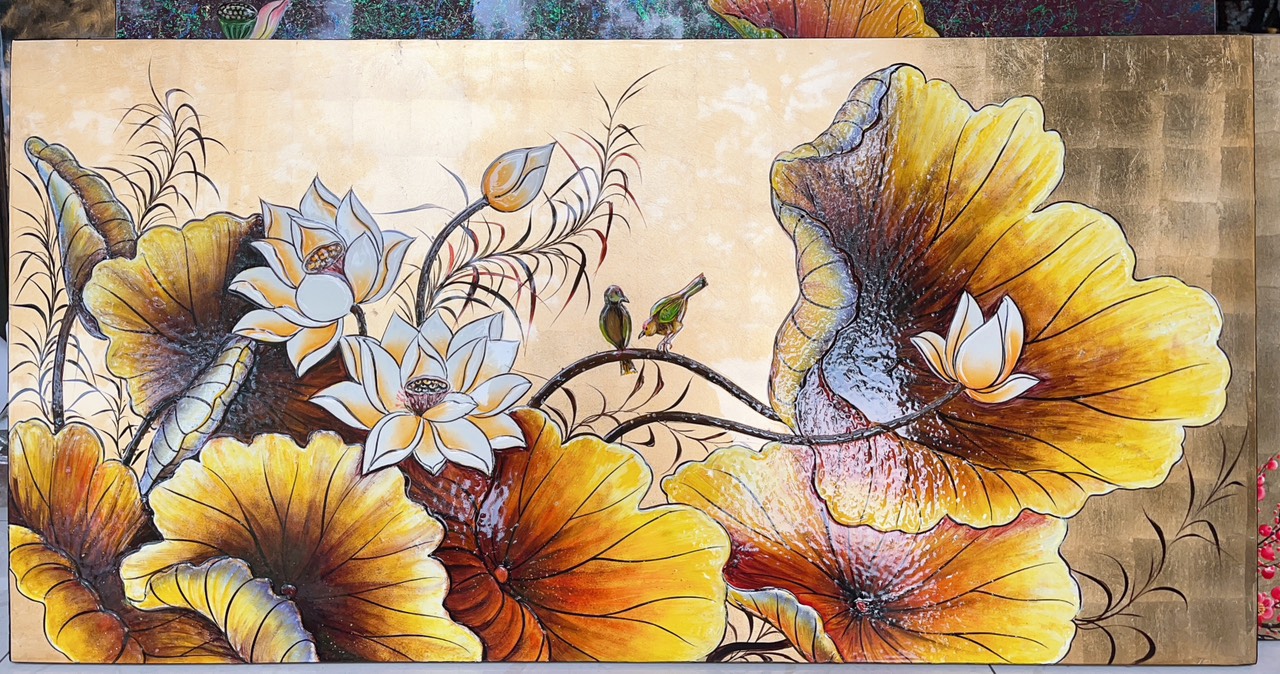 Nào cùng chúng tôi xem qua các mẫu tranh được vẽ tay nhé- cùng mẫu nhưng các bức sẽ có vài chi tiết khác nhau đấy anh chị nhé: Hoa sen được coi là biểu tượng của sự thanh tịnh và sự nảy sinh của sự sống. Với màu hoa sen thanh tao và hình dáng xòe như bông hoa, hoa sen được coi là một trong những loài hoa đẹp nhất của Việt Nam. Tranh sơn mài chủ đề hoa sen mang lại cho người xem một cảm giác thanh tịnh và tinh tế, giúp chúng ta tìm thấy sự yên bình giữa những áp lực cuộc sống hiện đại.