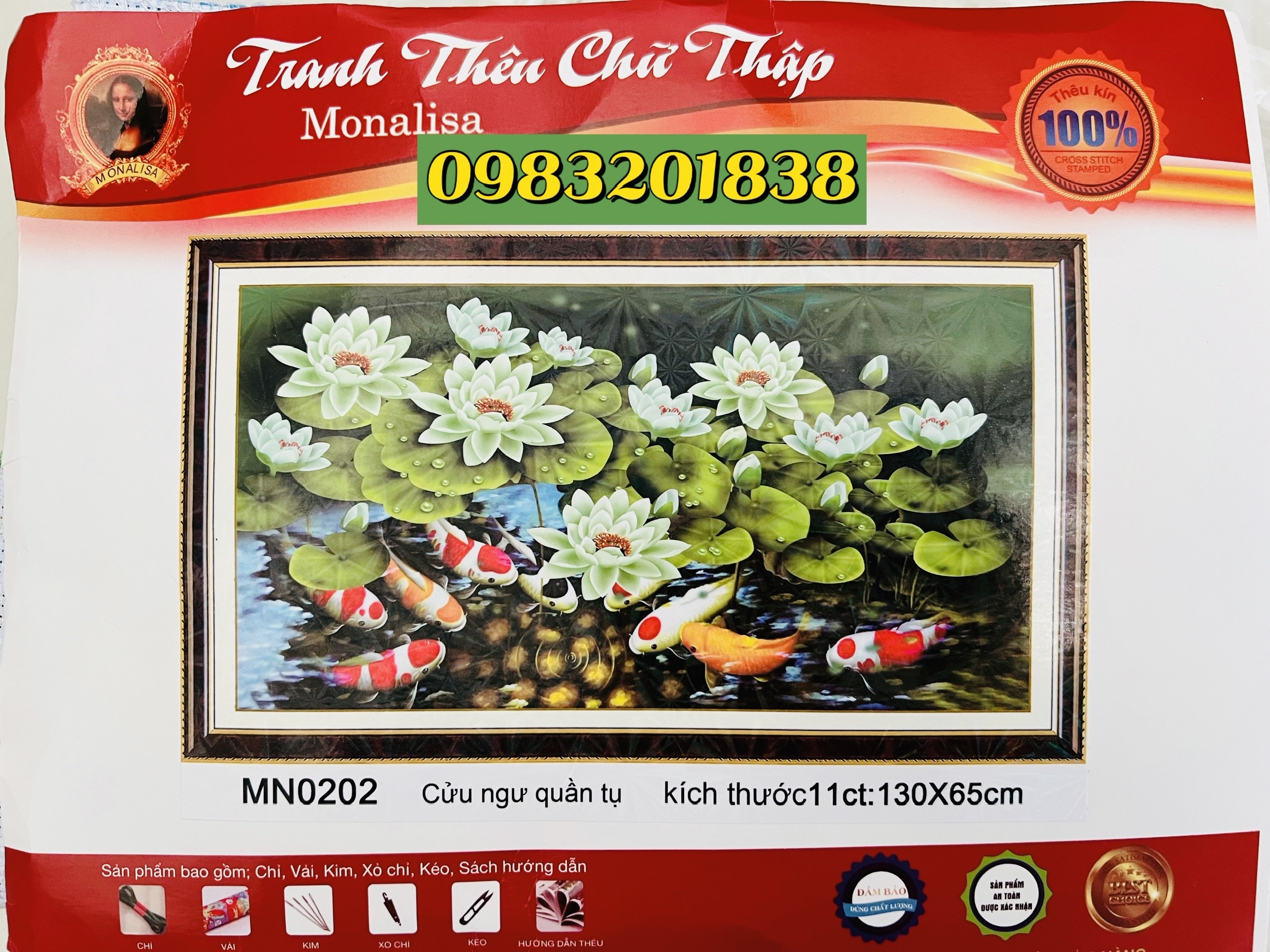 Tên tranh: Tranh thêu chữ thập Cửu ngư quần tụ MN0202