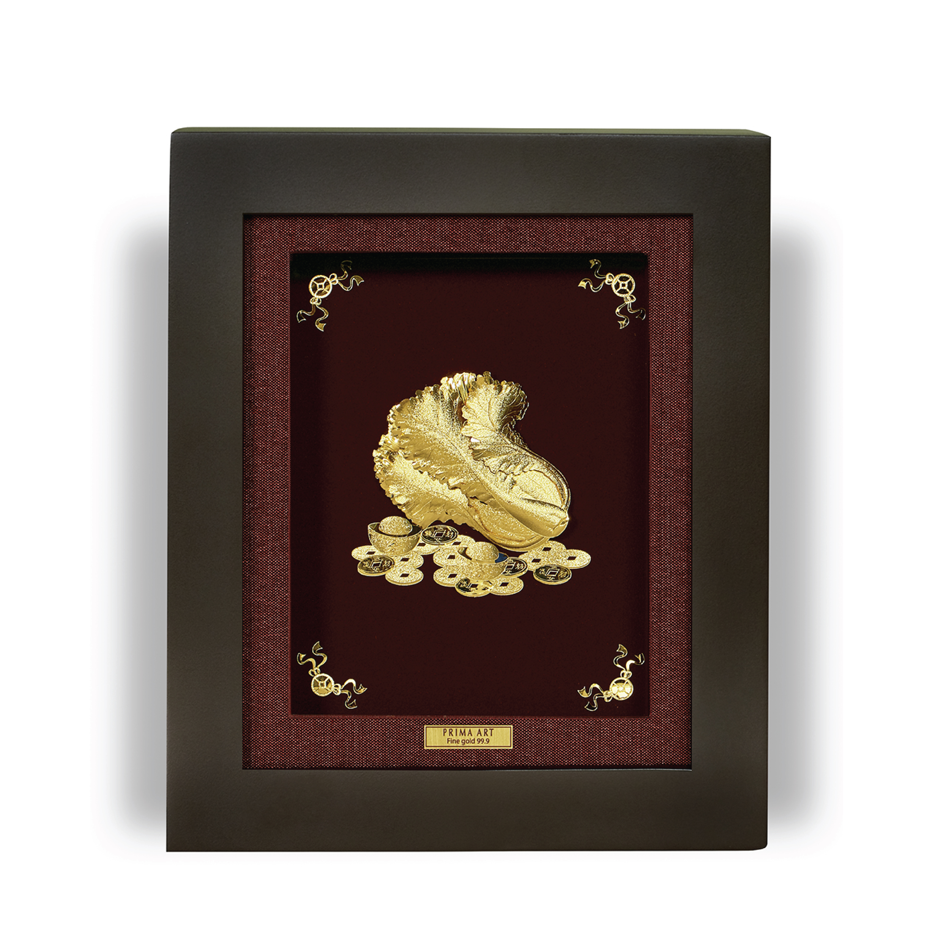 Chất liệu | Chất liệu bên ngoài : Khung nhựa, bề mặt kính trong suốtChất liệu bên trong : BẮP CẢI TRẮNG dát vàng 24K (99.9%)Kích thước khung tranh : 25 x 29 cm |