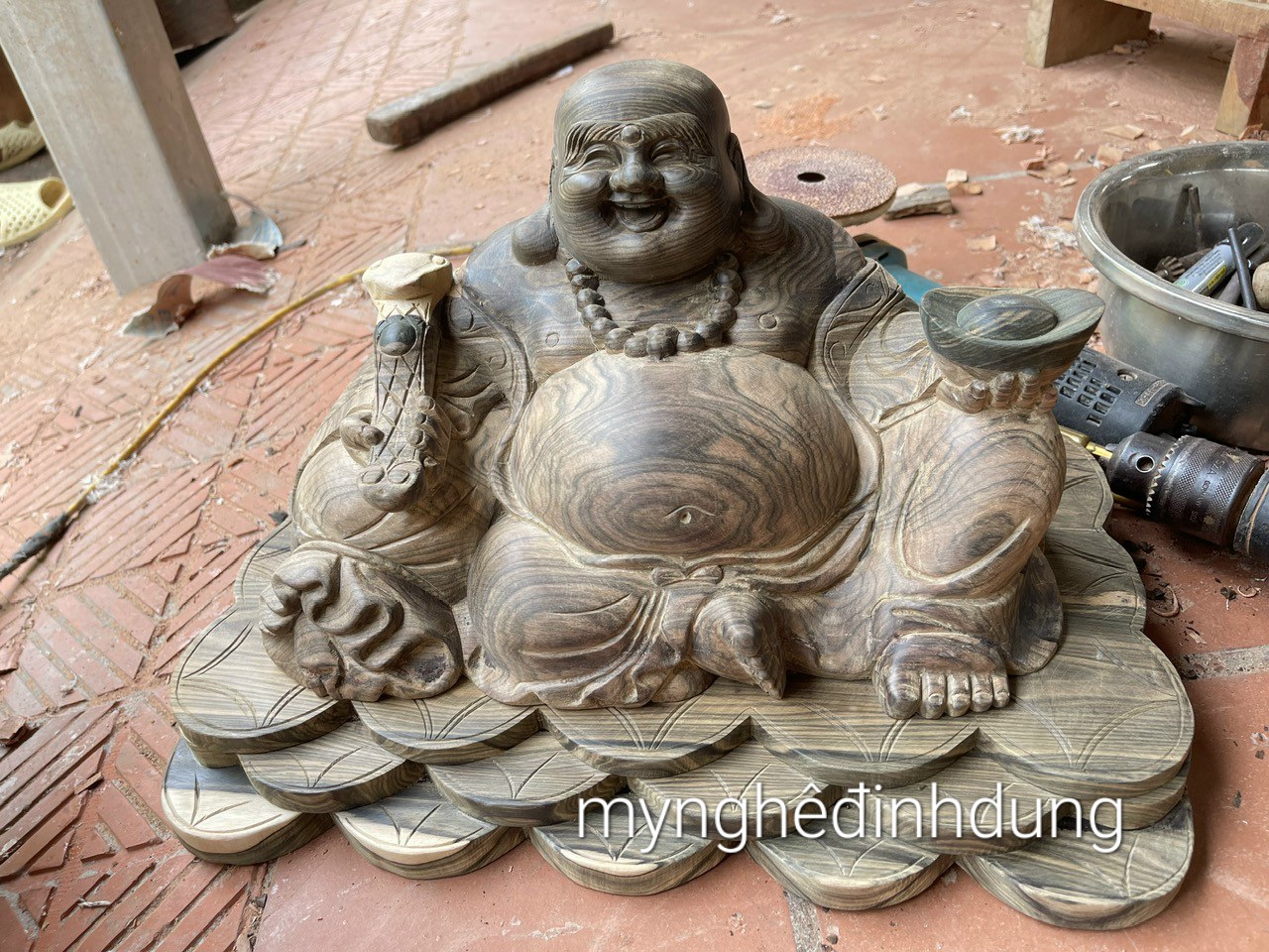 _ Tượng phật di lặc để bàn làm việc được làm bằng chất liệu gỗ mun hoa tự nhiên 100%