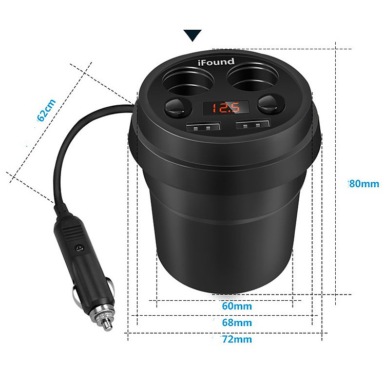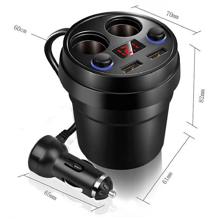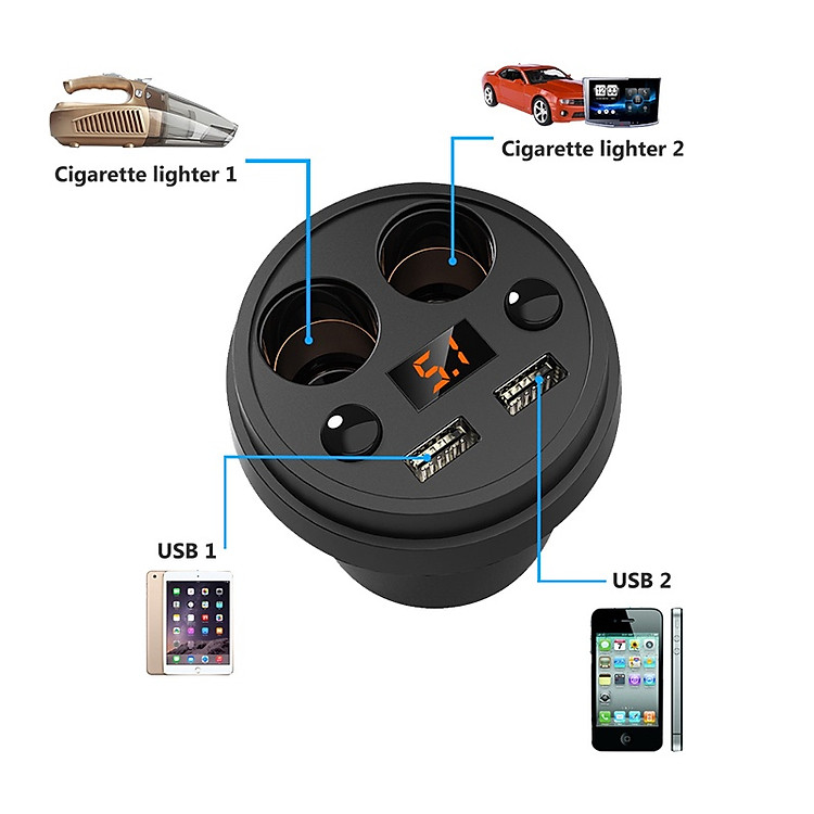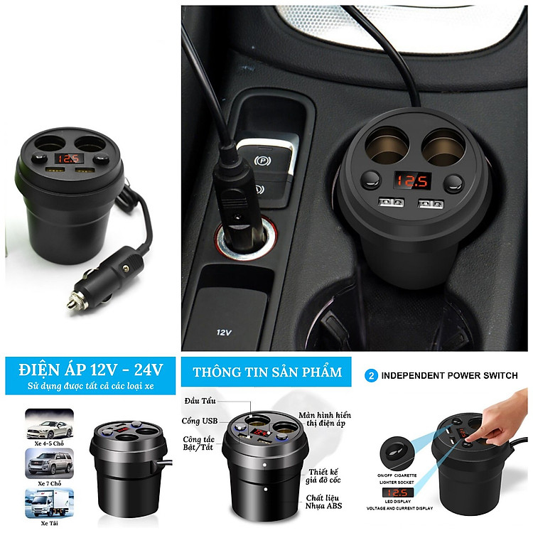 Sản phẩm đa năng gồm : 2 cổng sạc USB + 2 công tắc + 1 màn hình led + 2 vị trí chia cắm tẩu 250W + dây nguồn dài 50cm thoải mái cho bạn kéo ra tận ghế sau kể cả trên xe hơi 7 chỗ